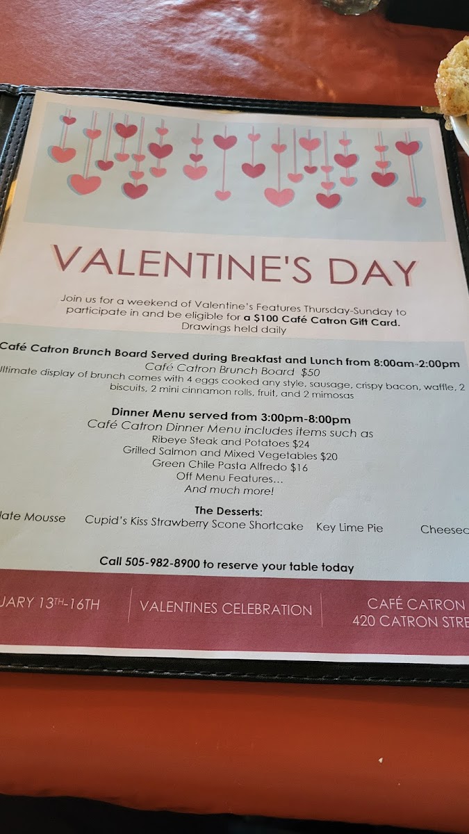 Whether you're looking for a charming spot for a girls' reunion dinner or a lively atmosphere for a casual lunch, Cafe Catron has something to offer. With ample parking and a varied menu that also includes vegetarian options, this enchanting restaurant is ideal for everyone. Do yourself a favor and come discover why so many have fallen in love with this local gem. Be sure to bring your friends along—it won’t be long before you find yourselves making Cafe Catron a regular destination!