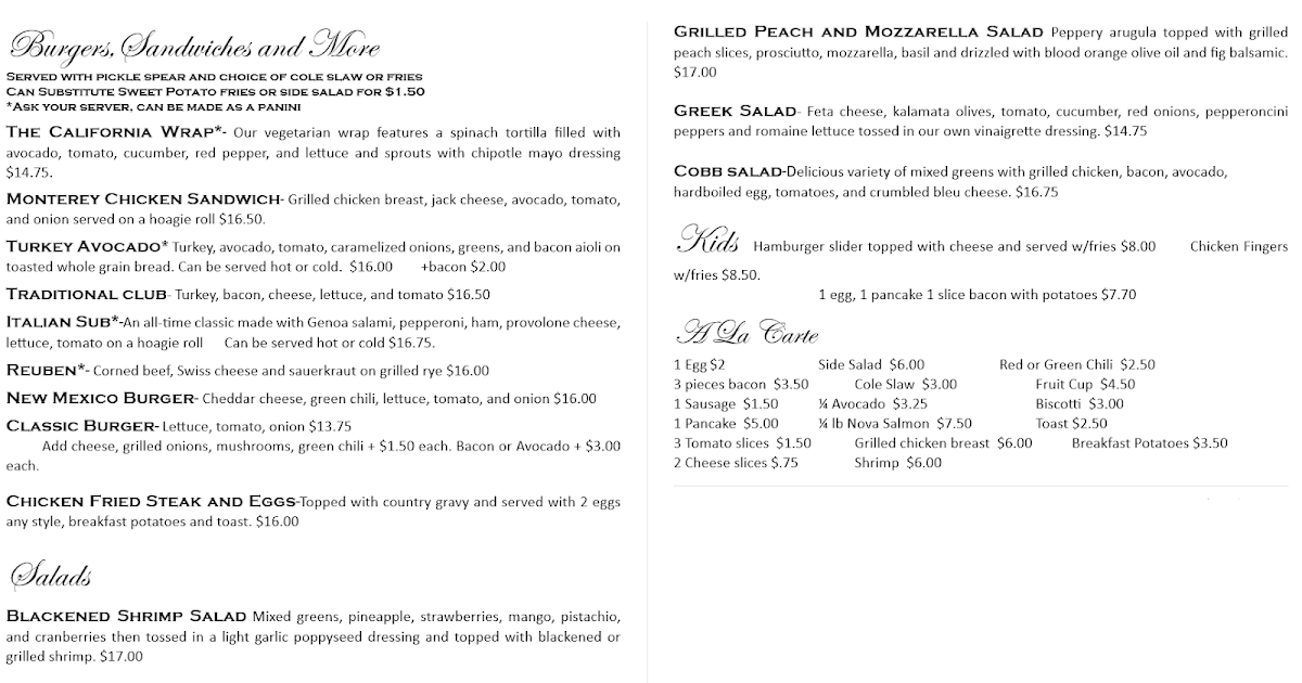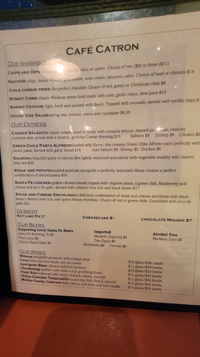After a long day of exploring Santa Fe, treat yourself to a delightful dinner selection that has quickly become a favorite among regulars. Many have praised their green chili Alfredo in both chicken and shrimp variations, remarking on its creamy, savory profile that embodies the essence of Southwestern cuisine. The steak and Salmon V2 are also standouts, making every dish at Cafe Catron an occasion to remember.